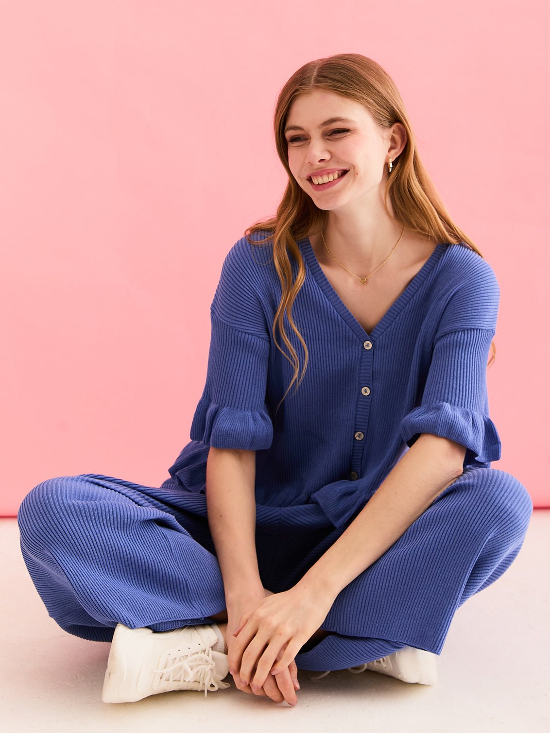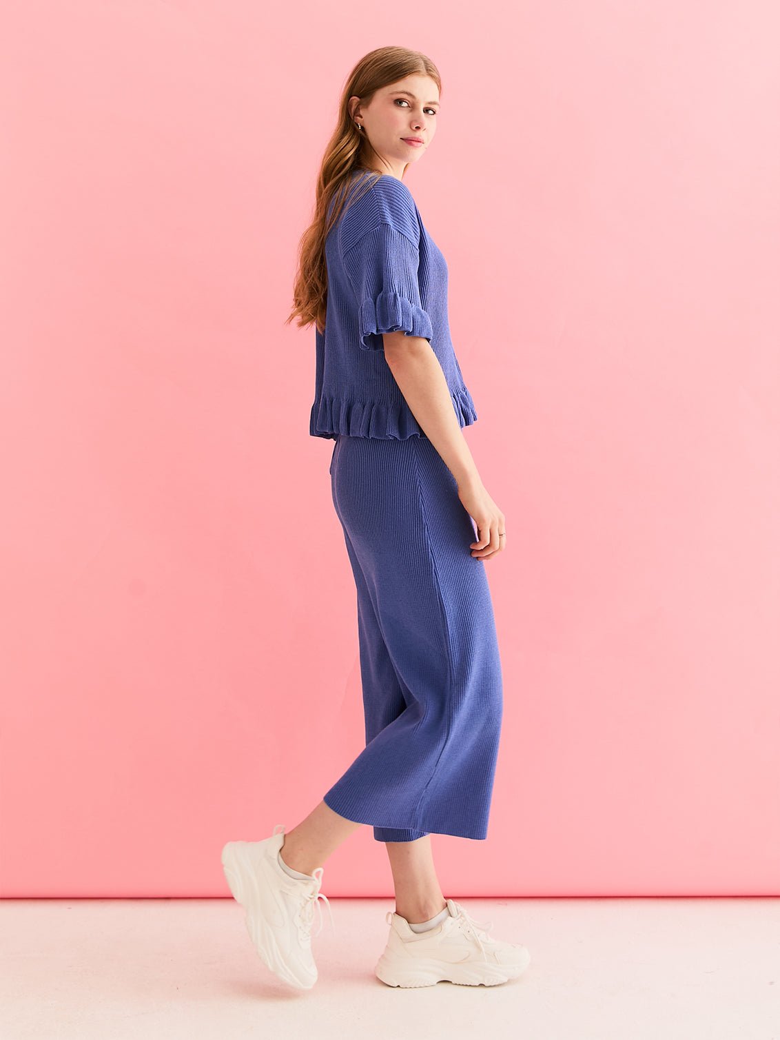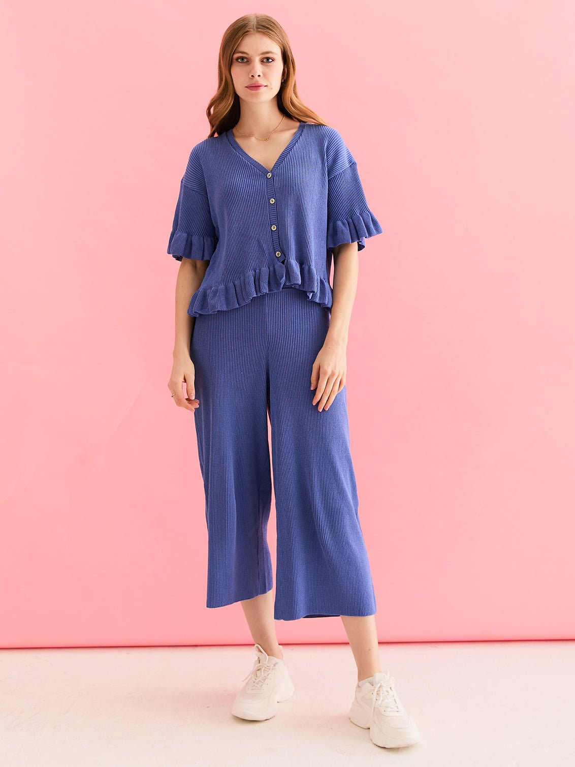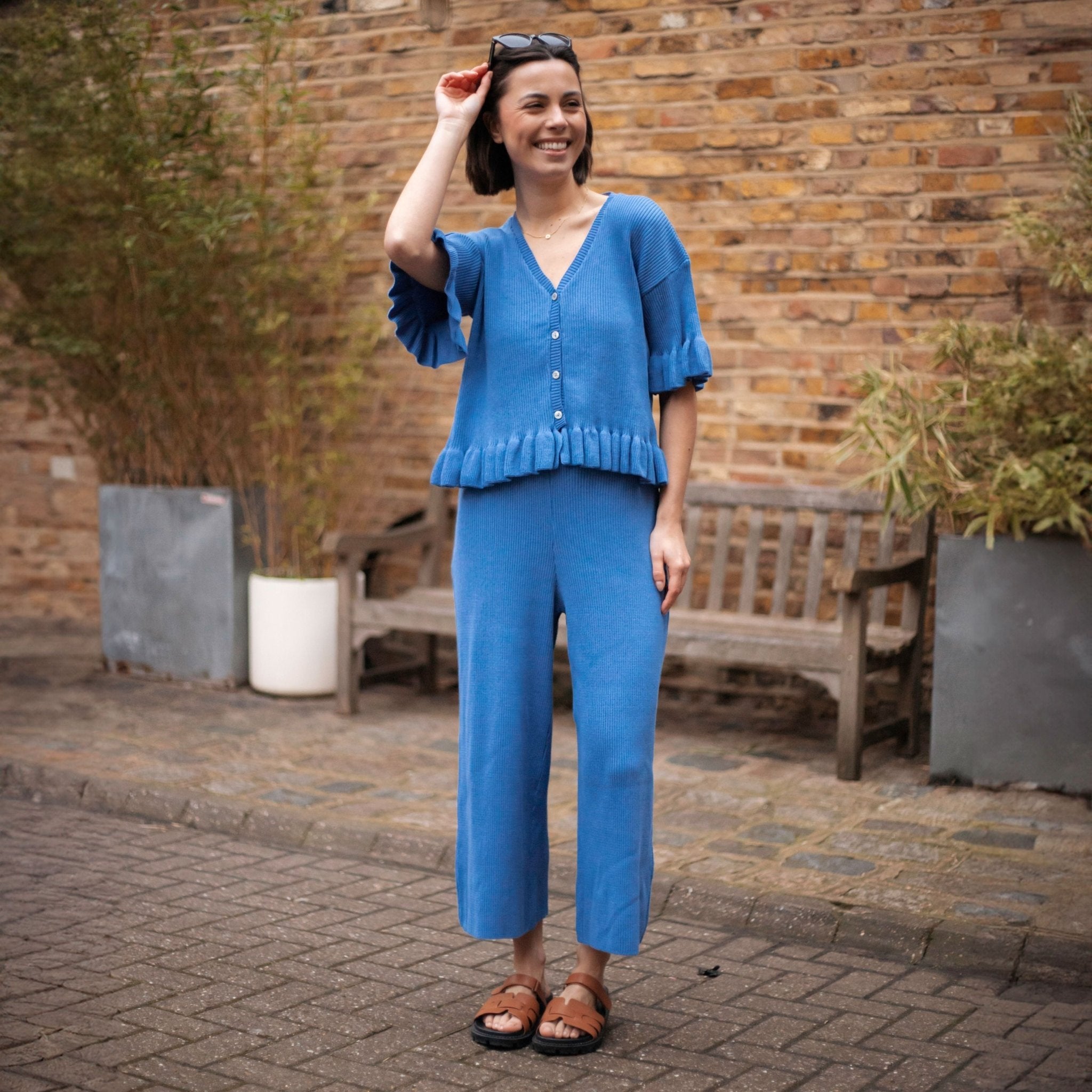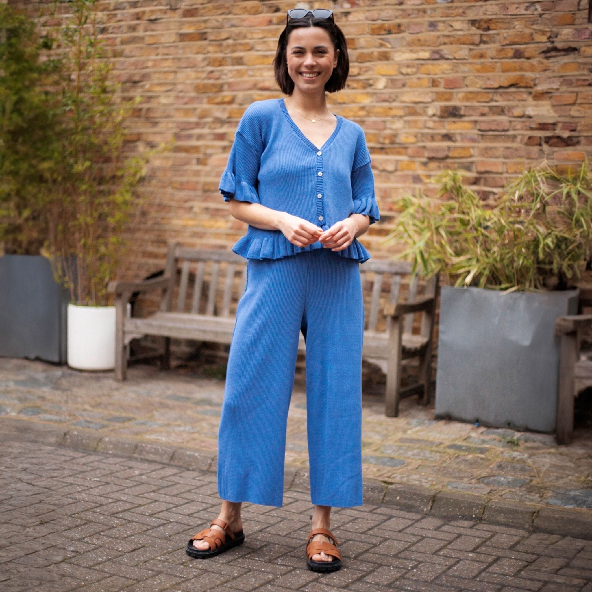 - Blue knitted lightweight cardigan & Trouser co-ord