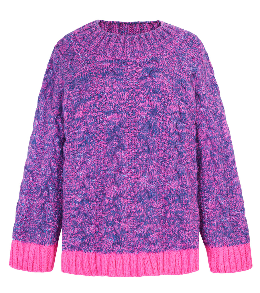 Looking for a chunky knit that brings comfort and colour? Jennie’s your girl 💙💖 Designed by Cara in a denim and pink marl twist yarn, she’s finished with a mock turtleneck, wide sleeves and textured cables that make her both cosy and elevated. To top it off, she’s got a playful pop of contrast colour at the cuff and hem, making her a statement piece you won’t find anywhere else on the high street.