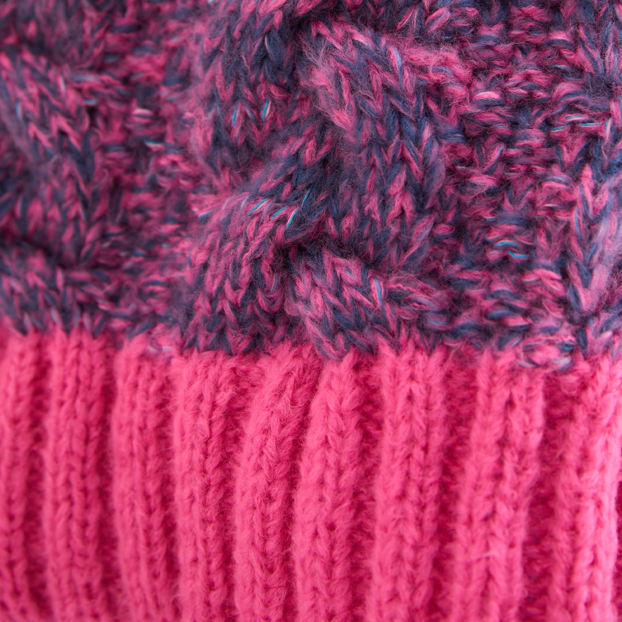🎨 Denim blue & pink twist yarn with contrast cuff & hem