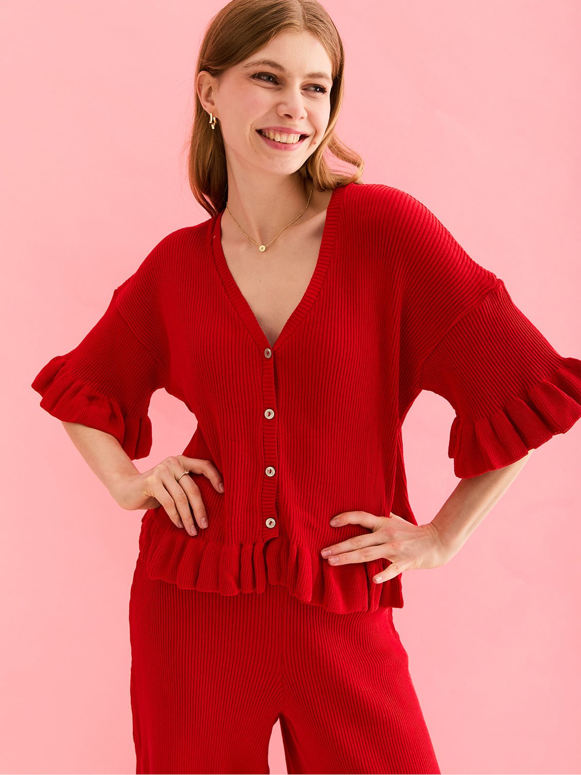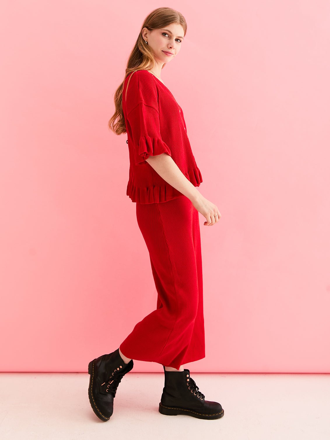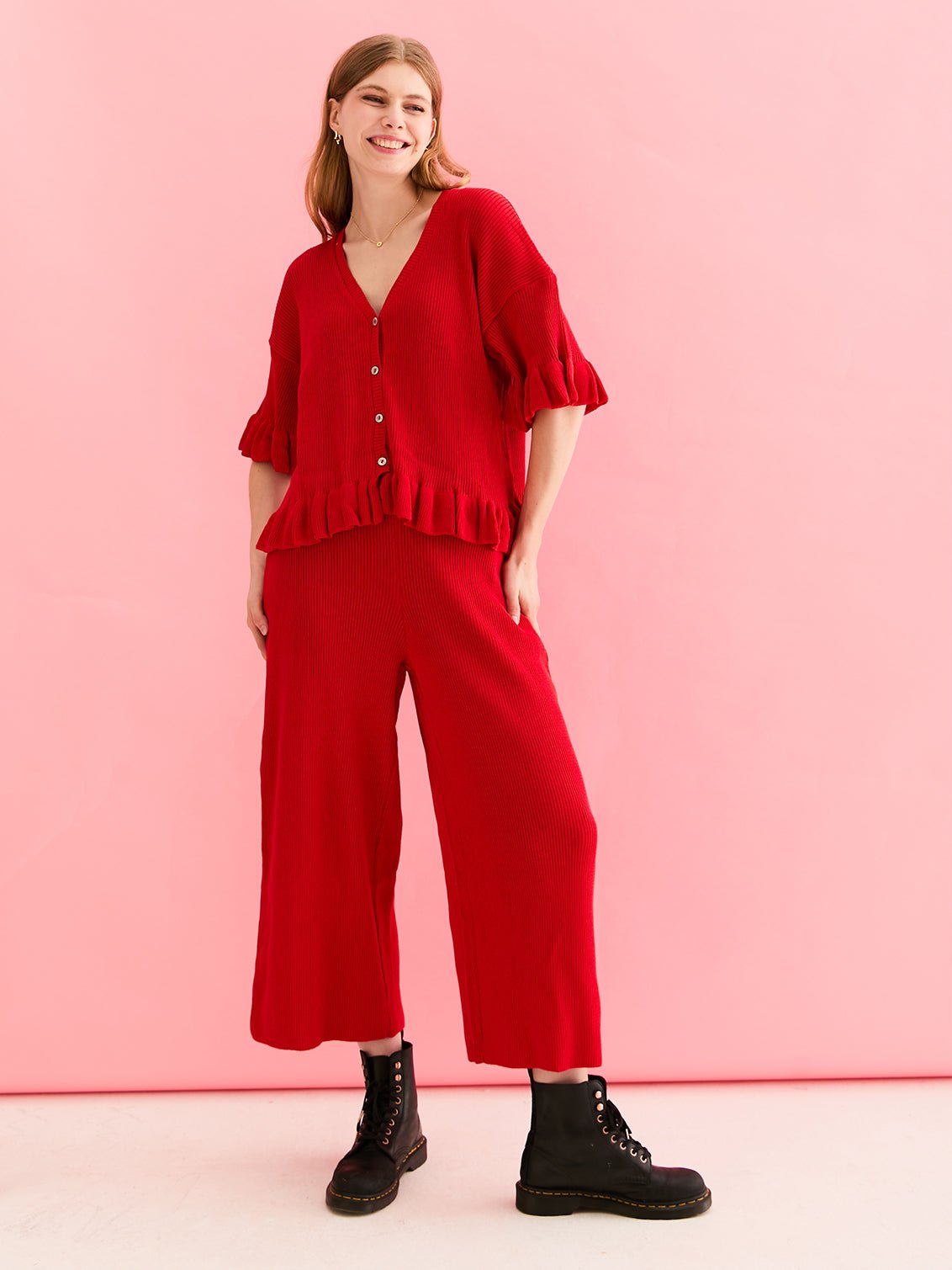 - Red knitted lightweight cardigan & Trouser co-ord