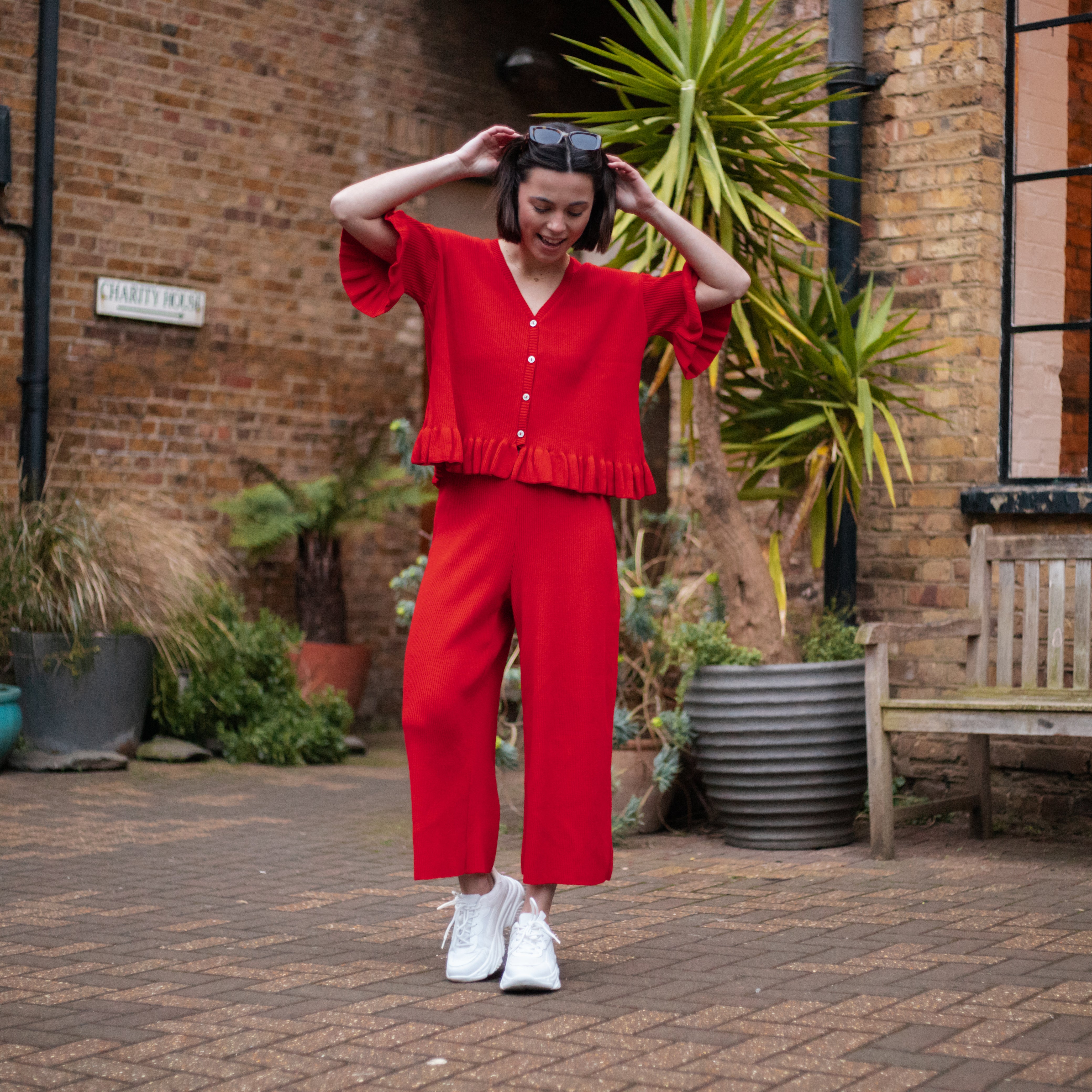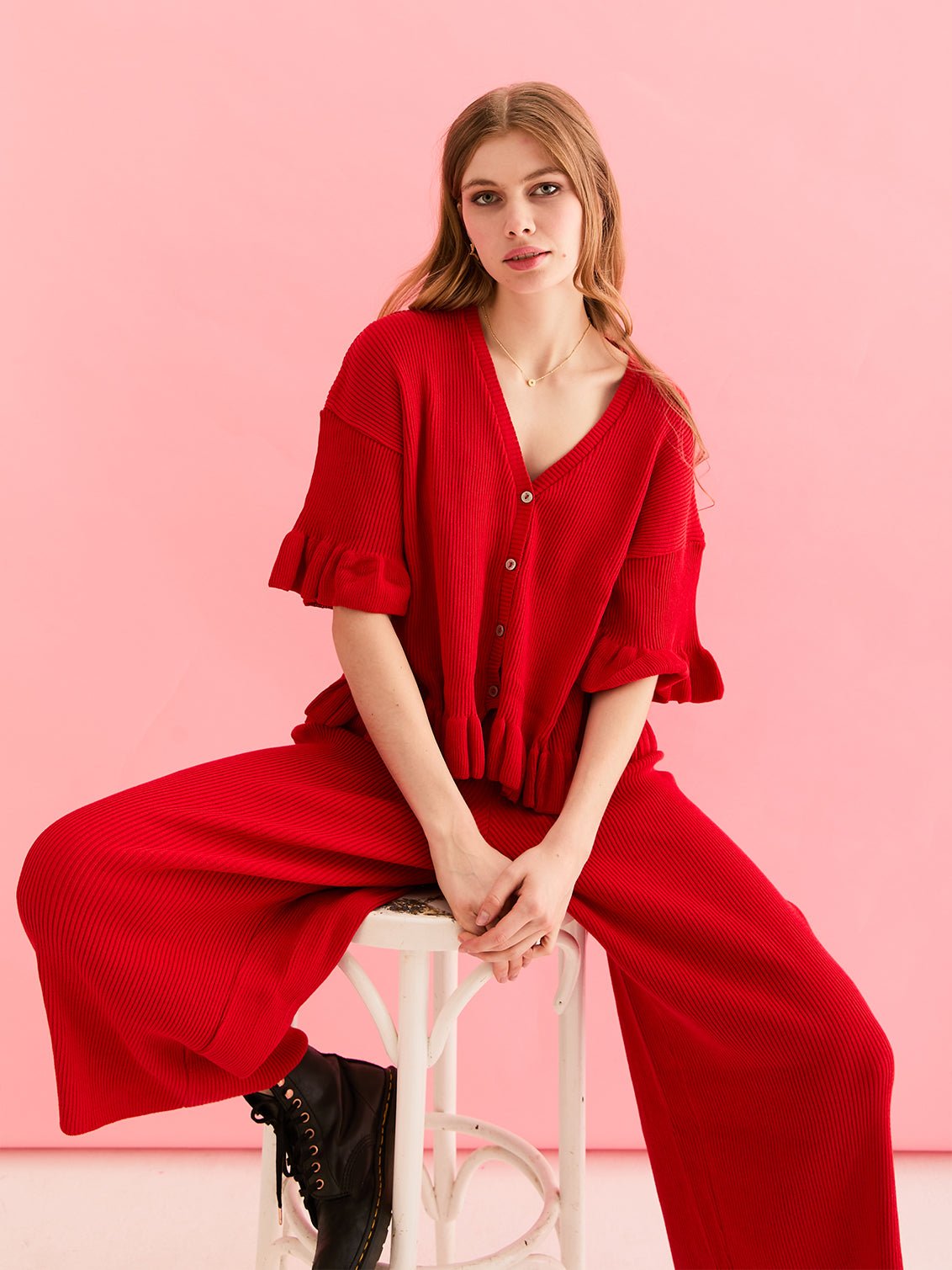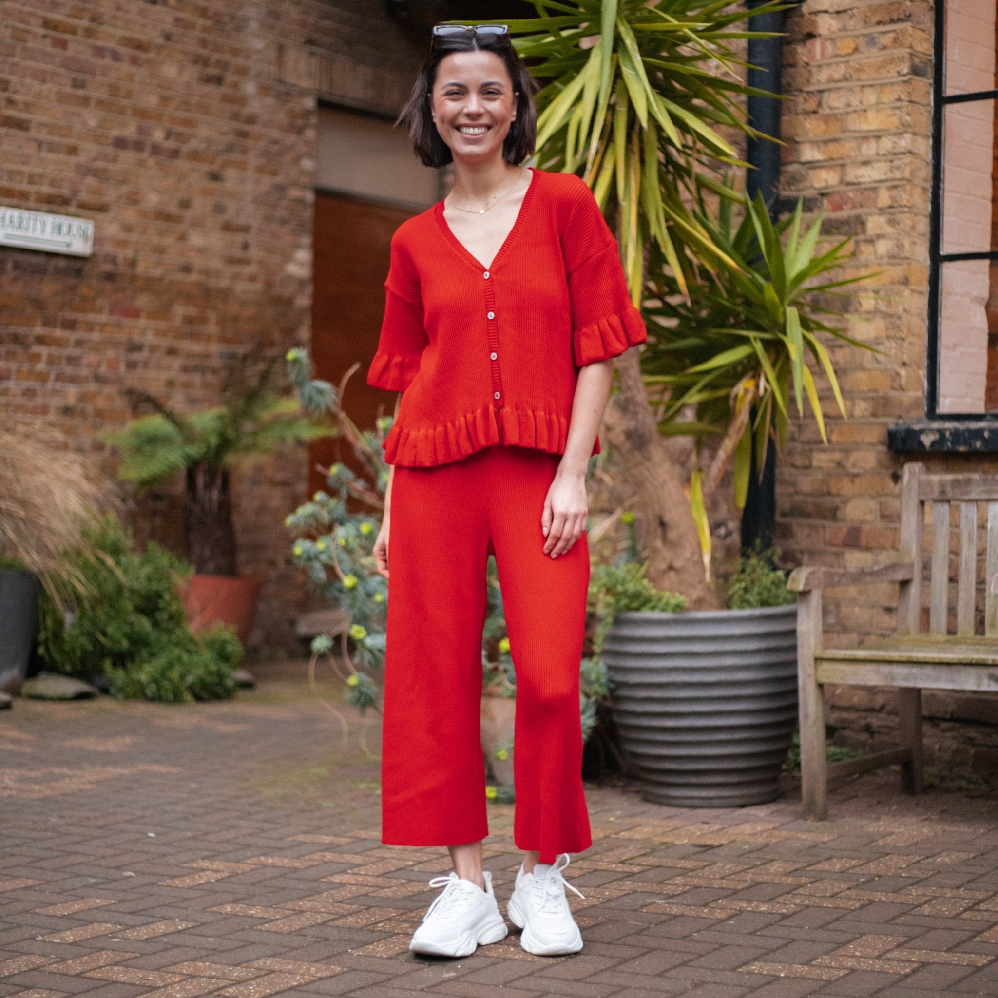 - Red knitted lightweight cardigan & Trouser co-ord