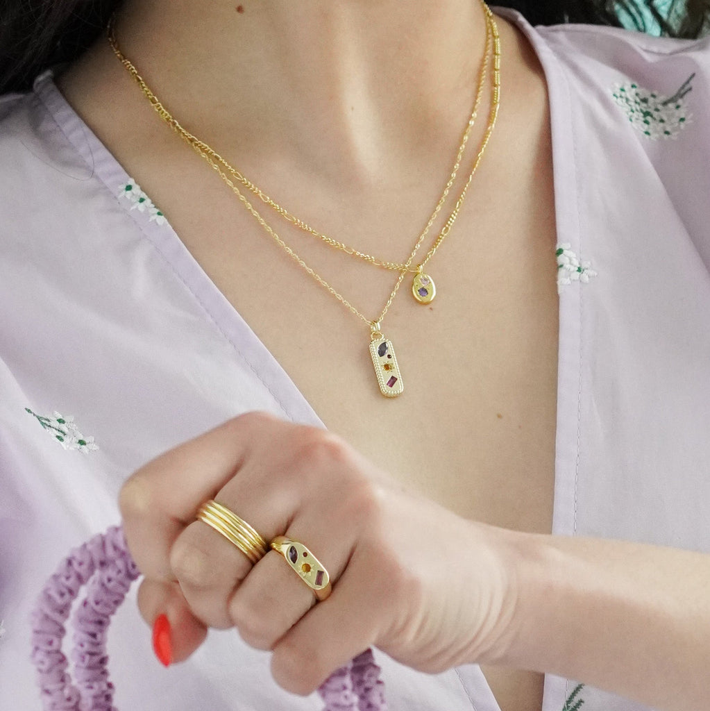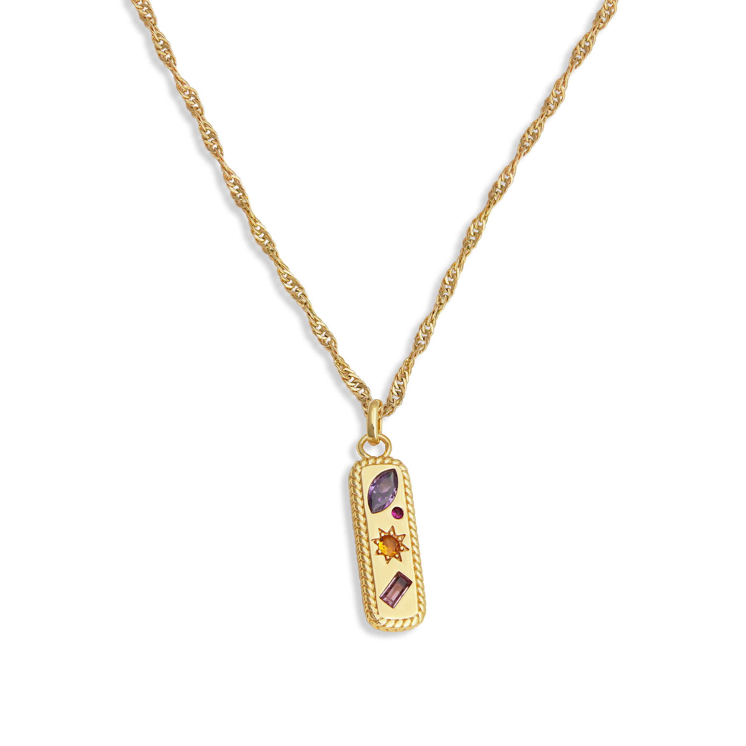 Kaleidoscope Gemstone Tag Pendant Necklace