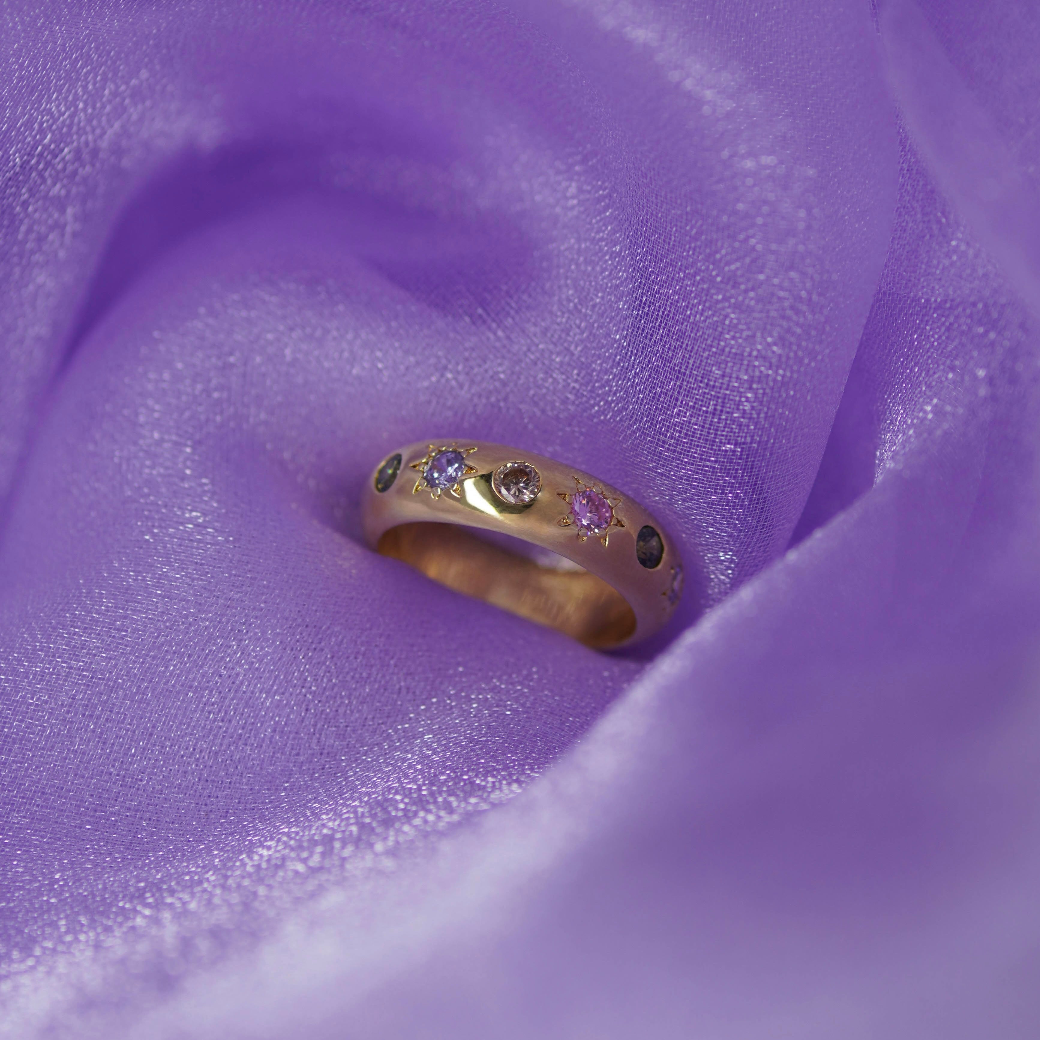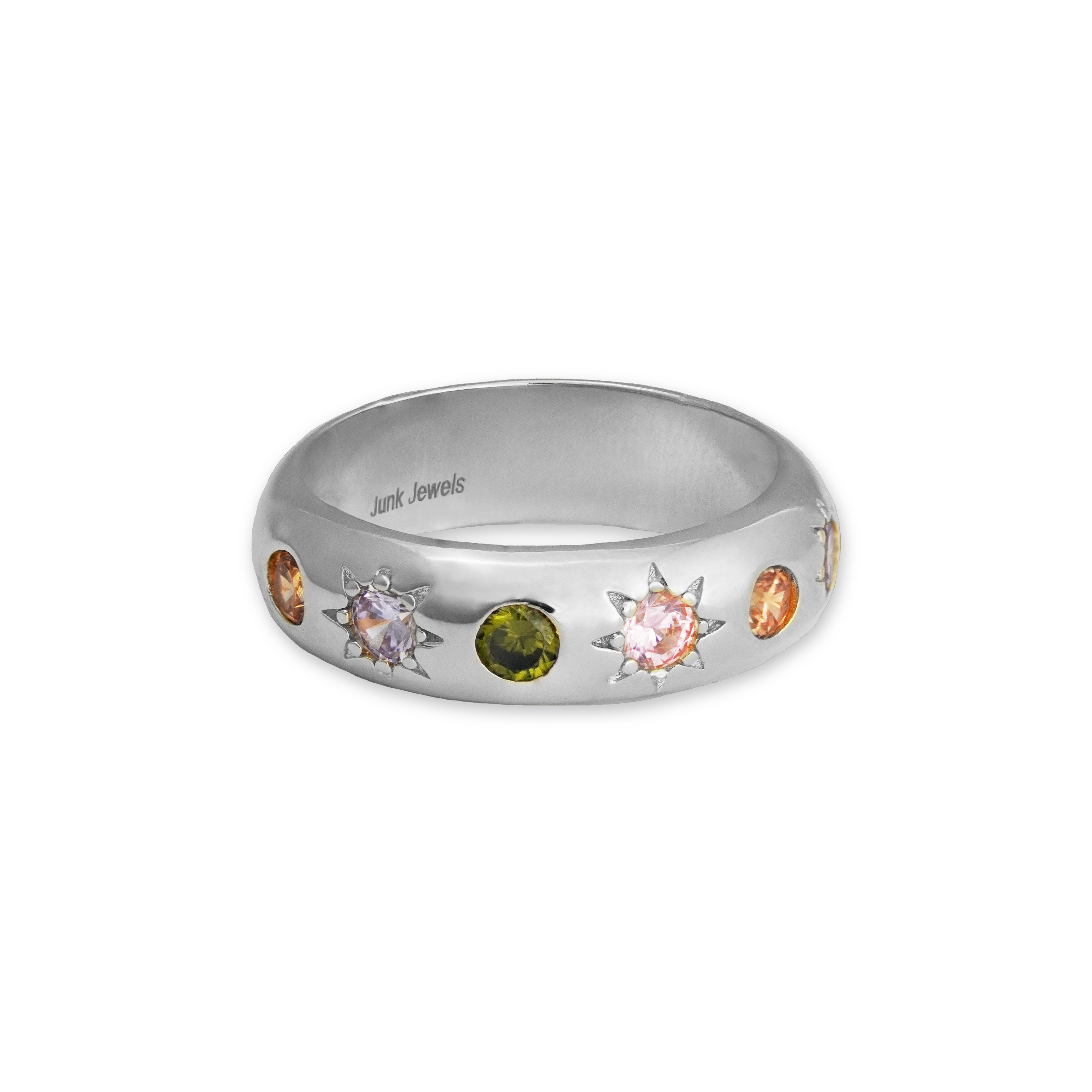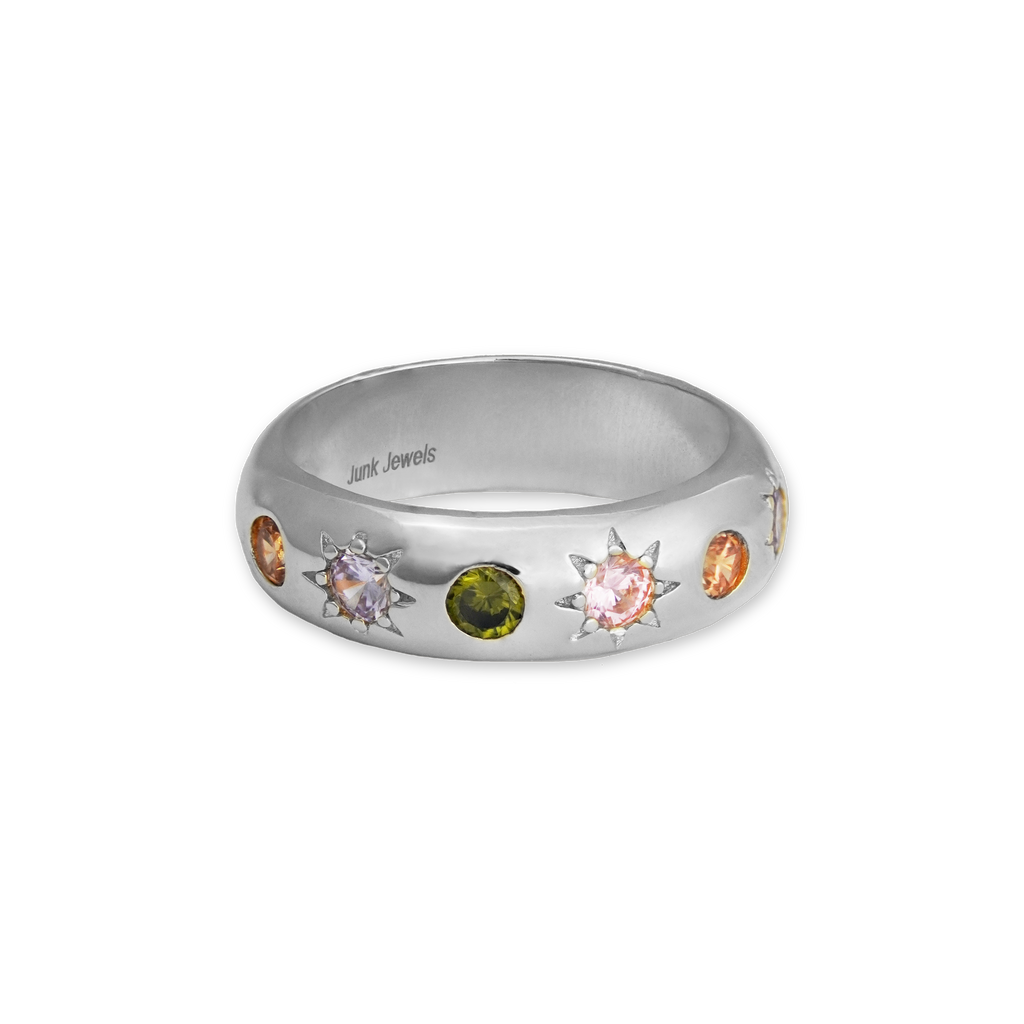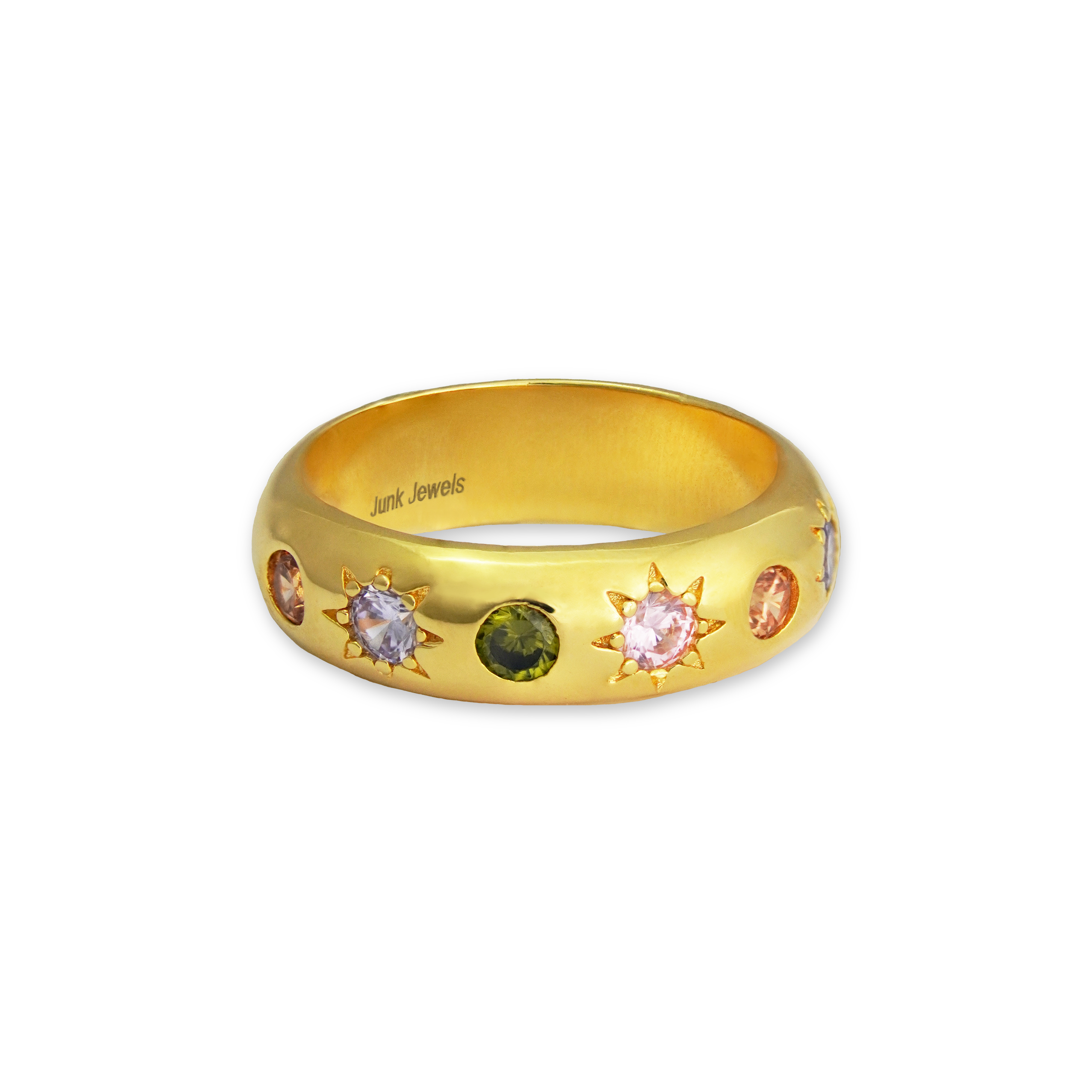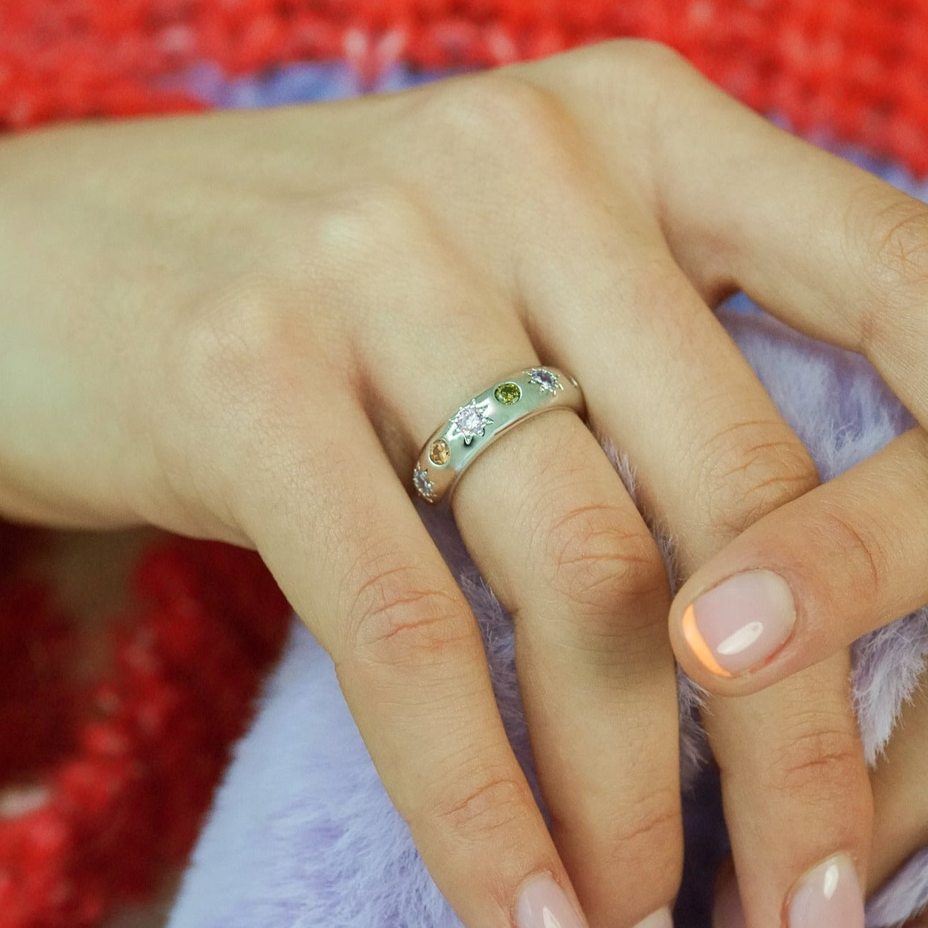 There's no sugar-coating needed for this embellished beauty. The chunky band ring is encrusted with gemstones like pastel coloured candies. The icing on the cake, is how stackable this design is, making it the perfect new addition to your jewellery box.