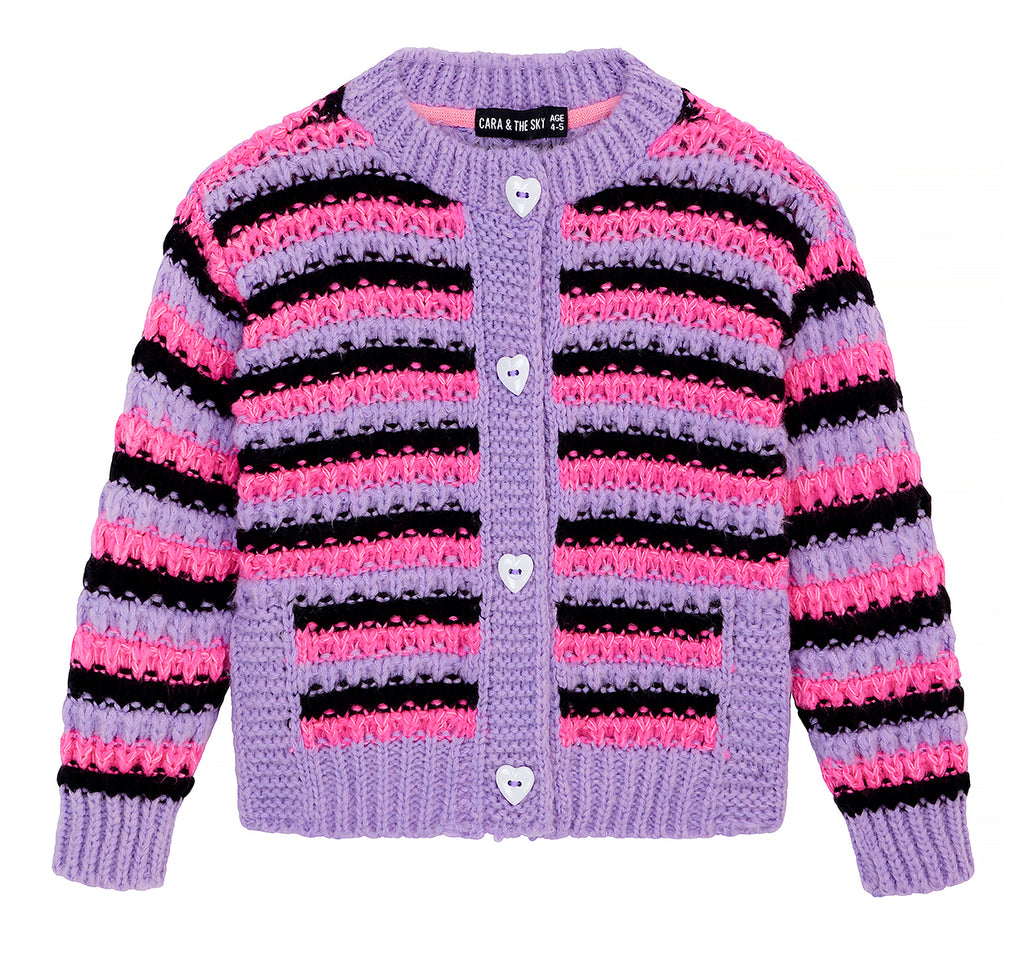 Twinning is always winning 💜 Our Bernice Twinning Bundle brings together the bestselling Bernice Cardigan and its pint-sized partner, the Bernice Mini Me. Bold lilac, pink and black stripes, playful heart-shaped buttons and chunky rib trims make this the ultimate dopamine-dressing duo.