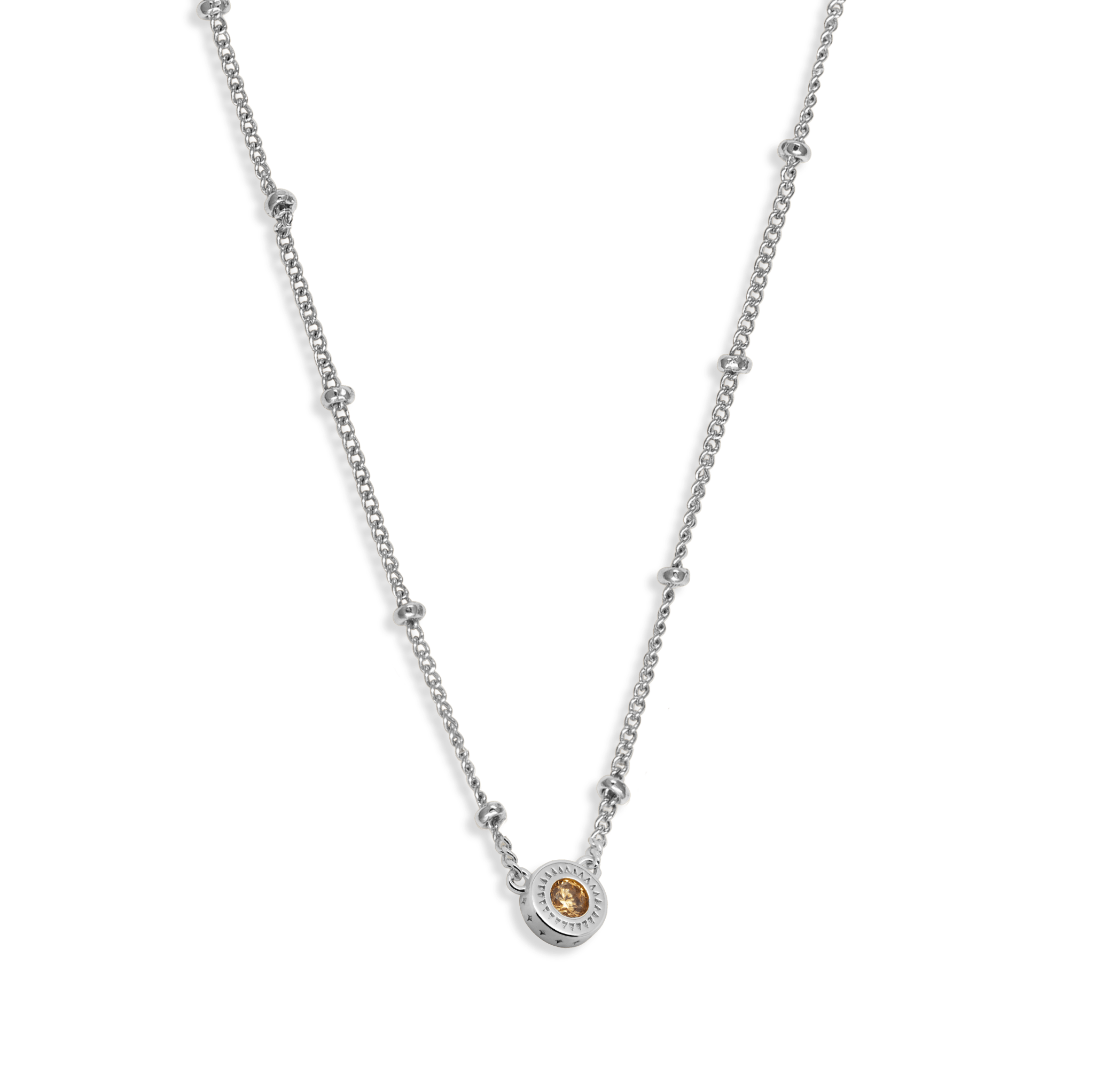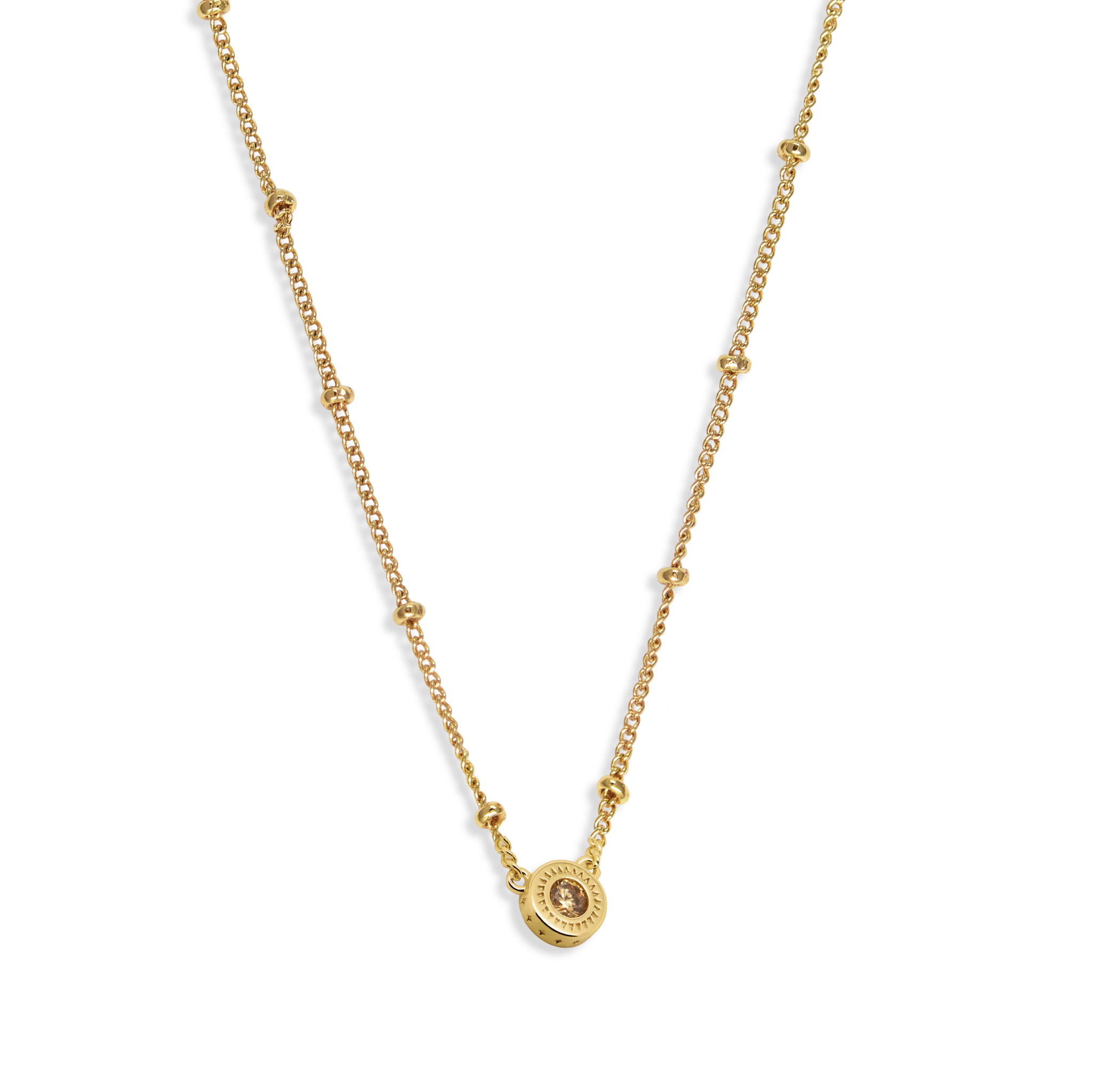 A sweet and simple Champagne coloured gemstone is the star of the show in this necklace, decorated with star engravings and a satellite chain to boot. The perfect everyday piece to adorn your neckline.