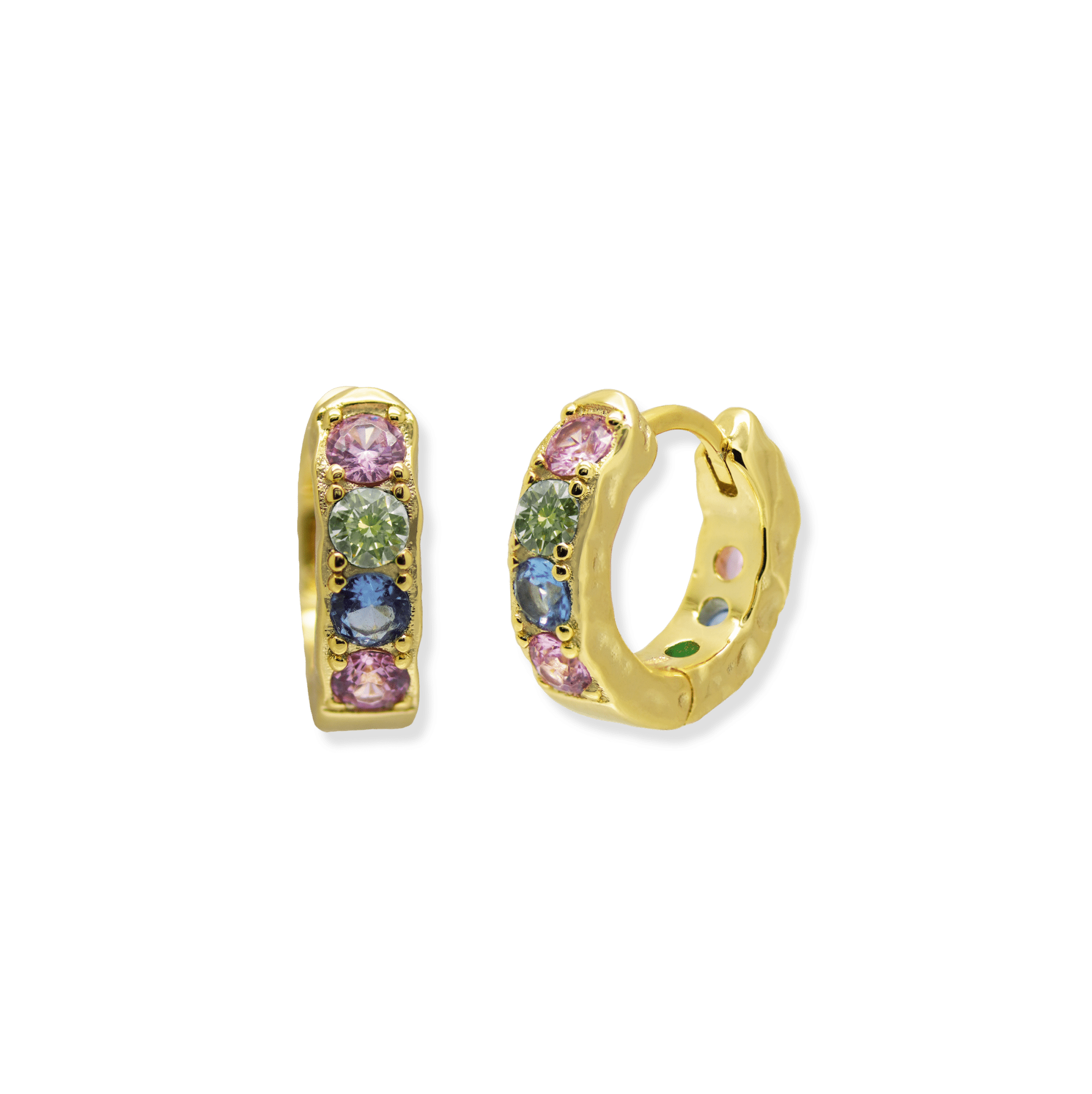There's no sugar-coating needed for these embellished beauties. The chunky, textured hoops are encrusted with gemstones like pastel coloured candies.