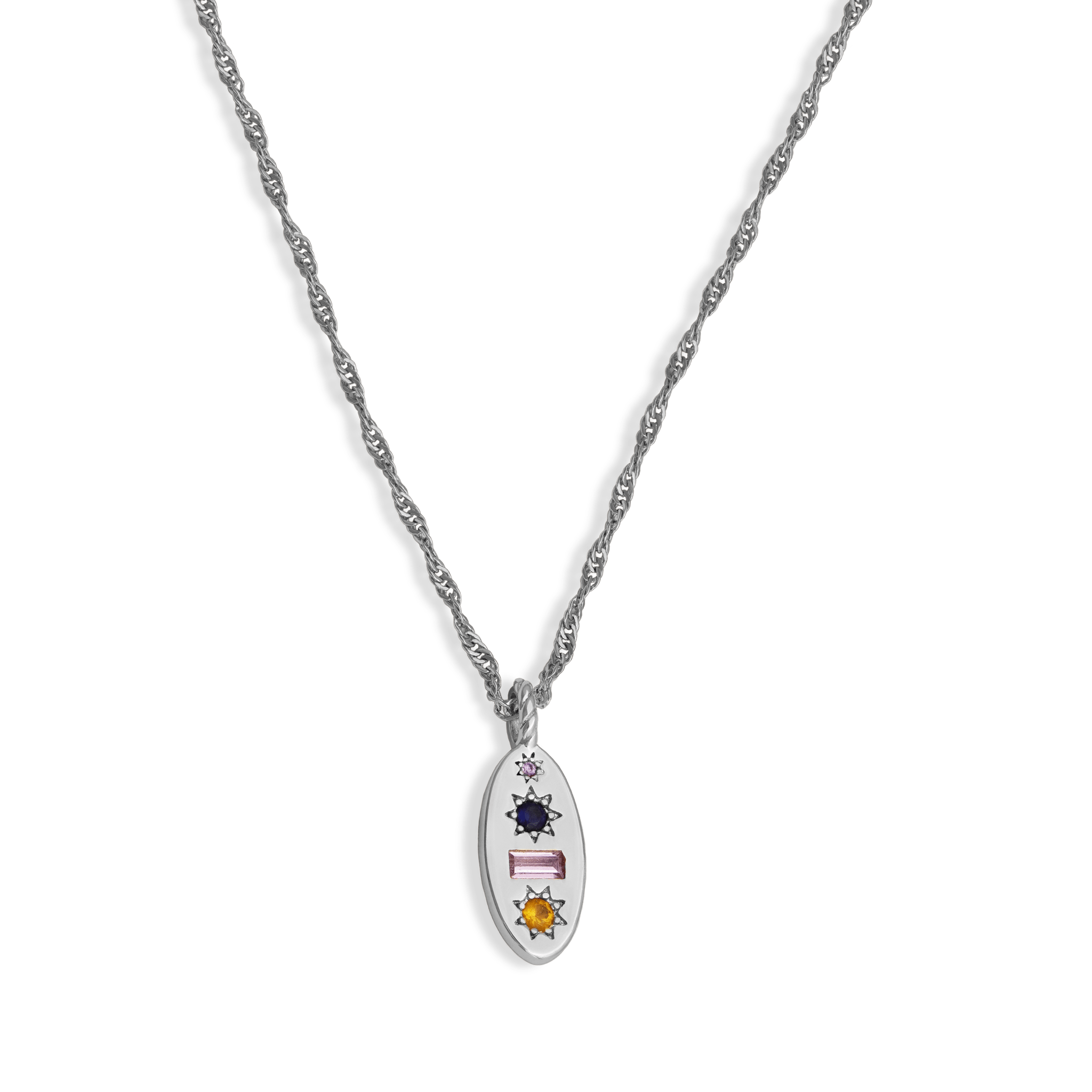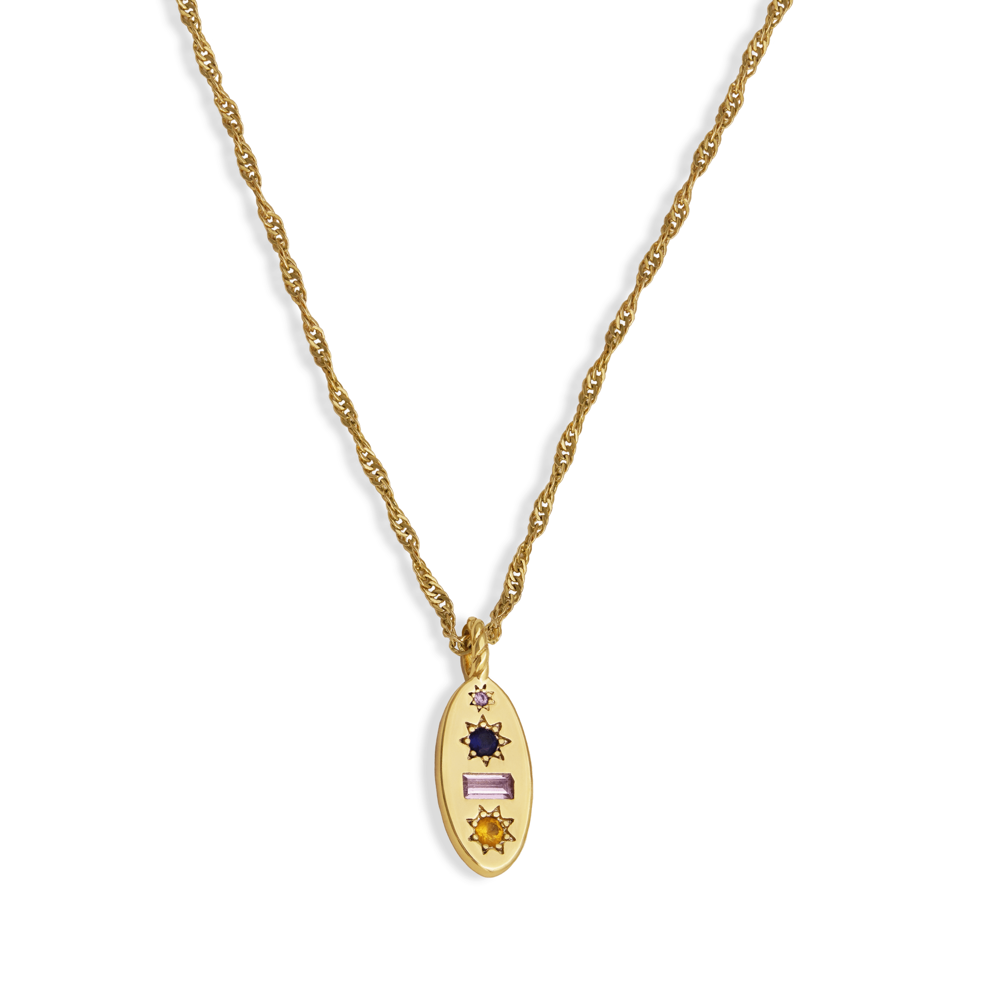 Indulge in the magic of the night sky with our Midnight Gemstone Charm Necklace. Decorated with four unique stones, featuring deep, rich hues that evoke the twinkling stars in a mini galaxy.