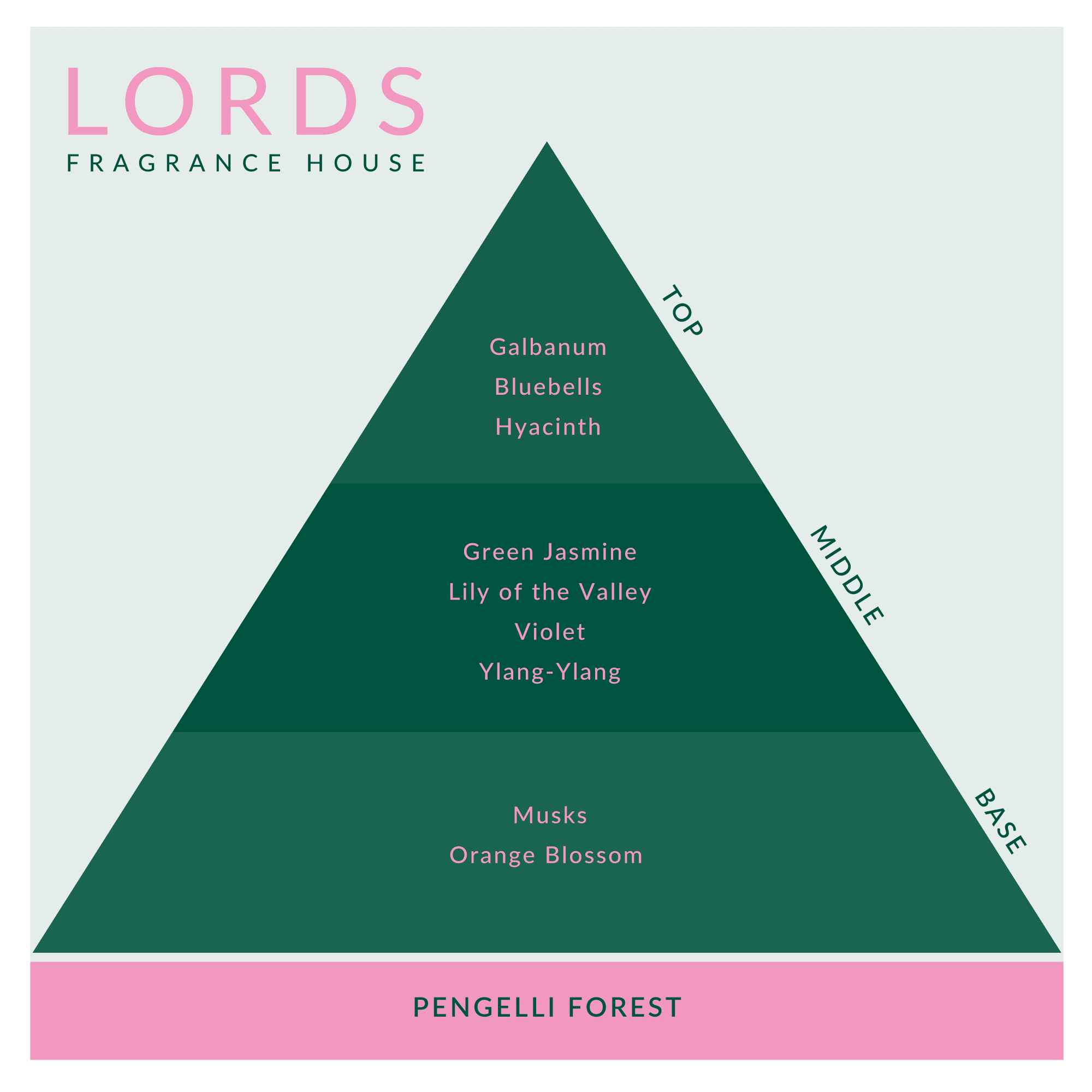 Pengelli Forest is part of the largest block of ancient Oak copse in west Wales, and it is this wonderful woodland that inspired this floral green scent, with the unmistakable aromas of bluebells, hyacinth with earthy galbanum to put you amongst the mossy, violet woods at Springtime.