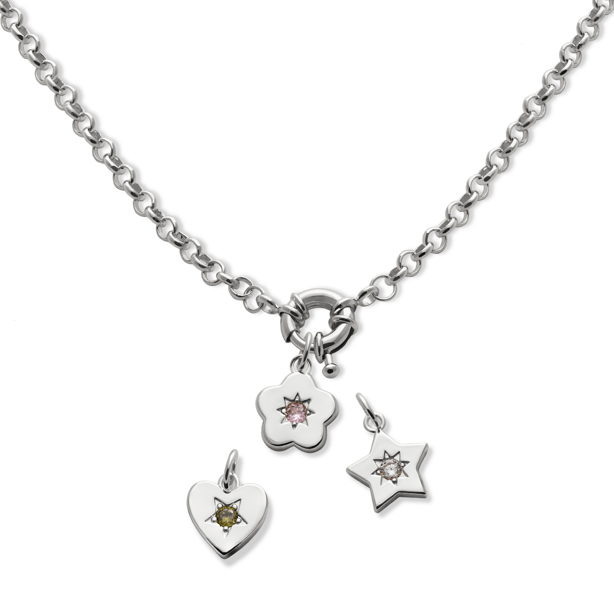 - Charm measures 12mm with 3mm Cubic Zirconia stones